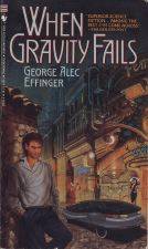 When Gravity FailsBantam Spectra Books, © 1986, PB, 276 pp, ISBN #0-553-25555-XReviewed July 1997 A rather peculiar (and moderately early) entry into the ongoing evolution of cyberpunk, When Gravity Fails has two primary hooks in it: The science fictional hook is the concept of people with slots in their head into which they can hook "moddies" (modules which allow a person to assume a programmer personality - real or fictional) and "daddies" (add-ons which allow a person to gain knowledge or a skill so long as the module is in place). The setting hook is that the story takes place in the near future in the Middle East, and the hero, Marid Audran, is an arab, and a less-than-devout Muslim. As befits a cyberpunkish novel, When Gravity Fails takes place in "the bad part of town", and it involves Audran - a roguish character who has shunned getting his head wired and refuses to work for the boss who runs the town - chasing down a psychopath who is murdering people close to him. Which makes it a mystery/adventure story. However, the plotting is quite loose: We're not really given enough clues to figure it all out for ourselves in a satisfying way, and Audran really stumbles onto the killer (killers, actually; there are two) more-or-less by accident, with rationales being provided later. The book mostly relies on its setting to succeed, and it is sometimes interesting, but never for me rose much above the level of basic detective fiction writing. Moreover, despite Audran's background, his first-person narrative is peppered with clever Western-style witticisms which made him much less believable. The novel also concludes with Audran having had his beliefs and principles pretty firmly compromised - albeit without having had much choice in the matter - and is therefore a rather depressing story by the time you're finished with it. A quick read, but a light and somewhat manipulative one, really.