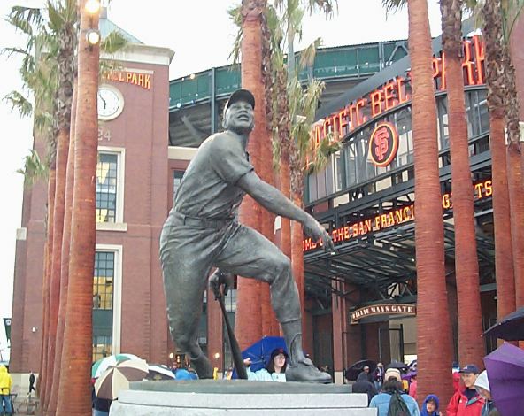 Unfortunately, we got up to the city only to find that... it was raining. A steady rain, though not especially heavy. We headed over to the park and saw the statue of Giants great Willie Mays in the front: