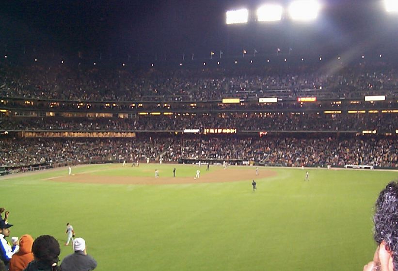 Pacific Bell Park is a cool ballpark. It reminds me of Wrigley Field, as I think I've mentioned, and it's just a pleasant place to be. The Garlic Fries are as good as they were at the 'Stick, even if the wings are not. I wish it weren't sold out all the time, but that's life. Now if only they could put together a more solid team, they'd be all set...