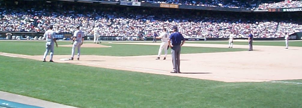 The game was a strange one. The pitching matchup was Livan Hernandez for the Giants (a.k.a., the most-abused pitcher in baseball by his managers over the last three years; it's a wonder his arm hasn't fallen off!) against Jose Lima for the Houston Astros, who had a terrific year last year, but has been absolutely terrible this season. CJ and I took bets as to who would fall apart first.