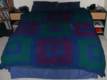 I was floored. I'd had no idea she'd had this in mind. And she used some of my favorite colors. It's really professionally done, too; no loose strands, and straight edges and joins between the separate squares. I put it on my bed almost immediately: