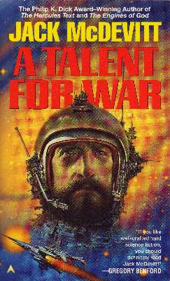 A Talent For WarAce, © 1989, PB, 310 pp, ISBN #0-441-79553-6Reviewed November 1996 This is just the sort of space opera SF that really excites me: Larger-than-life characters changing the course of history for entire planets, indeed, for all of human civilization. Of course, by the time A Talent For War gets underway, all of these characters have been dead for two hundred years. There isn't even anyone left alive who knew any of these people, and these figures are thus viewed and revered much as we 20th century Americans view and revere the figures of the American revolution. Briefly, two centuries earlier an alien race, the Ashiyyur, was invading human space. The major human powers - Earth, Rimway, and others - did not get involved, because they did not perceive a real threat to themselves. So the Ashiyyur started conquering the worlds at the edge of human space. But a small fleet of frigates, led by a man named Christopher Sim and his brother Tarien, held them off for long months until an alliance was struck that brought the major powers into the fray and repelled the invaders. Christopher Sim, hailed as a brilliant strategist, was killed in the final confrontation between his forces and the Ashiyyur. The story opens with Alex Benedict learning that his uncle Gabriel has died, and that he was on the trail of something big related to that great war. The file that Gabriel bequeathed Alex is stolen before Alex can view it, and he begins a long quest to unearth what his uncle had discovered, and to learn the secrets of the war that both sides have kept hidden for two centuries. Much of the book involves Alex sorting through the information he unearths from various planets in human space, and the peculiarities of the rear-guard war that Sim was fighting. For instance, at one point Sim managed to evacuate Point Edward, a planet with a population of 20,000 people. The Ashiyyur bombed the city into oblivion, although it was certain that they knew it was deserted, and there was no record of them behaving in such a manner previously. Generally they attacked only military targets, not civilian ones. And there was the legend of seven of Sim's crewmen who deserted him before the final battle, replaced by seven other figures who Sim recruited at the last minute for what was surely a suicide mission. But there was little information about any of these figures - either the deserters or their nameless replacements. Gratifyingly, A Talent For War avoids the paranoiac government-cover-up approach that many other novels might take. There are hidden secrets here, but they are hidden by the meticulous efforts of these two-centuries-dead people for very specific purposes. The story is one of revelation rather than one of suspense and shadow-fighting. The book contains several subtle themes. Perhaps the most interesting is that of how to conduct a war. The Ashiyyur - who are telepathic - fight wars by strict ritual. Sim did not do this; he was greatly outnumbered, and thus fought a war of sneak-attacks and hit-and-run ambushes, and was regarded as dishonorable by the aliens. Exactly how far Sim was willing to go in his goals, and the toll it took on him, is one of the revelations of the book. Of course, the notion of "necessary lies" vs. the virtues of having the full truth known is another theme, and the latter is extolled by a not-quite-entirely-convincing revelation at the very end (although it does explain some of the story's mysteries). I found A Talent For War to be a real page-turner, and very effective at portraying its legendary figures without falling into comic-book grandiosity. I think it's McDevitt's best novel. Update: I re-read this book in 2006 after reading the follow-up, Polaris. I enjoyed it, but felt it didn't hold up as well on re-reading. Of course, maybe it's just that my tastes have changed in a decade. It's mostly the end of the book which doesn't hold up for me: The motivations of the Ashiyyur are rather murky, and their stated motivations - trying to prevent another war - are a little hard to believe. And there's really no exploration of whether they were right or not in their belief. The book's framing sequence and the fate of the figure it concerns is still something of a mystery to me, even after this re-reading. McDevitt does a fine job of subtly revealing several other mysteries in the book, but I think this one is a little too subtle: How'd he end up where he did, and who was responsible? Again, the motivations are rather murky, which makes it difficult to tell; motivation is so important when trying to draw an inference. I was disappointed, I suppose, that the book didn't have new depths to reveal on re-reading. It's still a lot of fun, though.