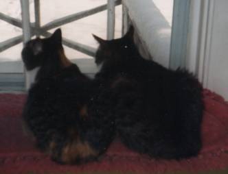 I grew up with an Abyssinian cat named Amos and a Welsh Corgi dog named Punkin. A few months after I went away to college, Amos passed away. He was 17 years old, so it's not like we didn't expect it. I'm not sure whether it was my mother or my sister who wanted a new cat, but they went off to the pound and found William, a cute tabby kitten. He was nominally my sister Katy's cat; she was in high school at the time. I came home for vacation a few weeks later, and I guess they'd decided William needed company. So we all went back and picked out Jennyanydots, with her double front paws and tabby/calico colorings.