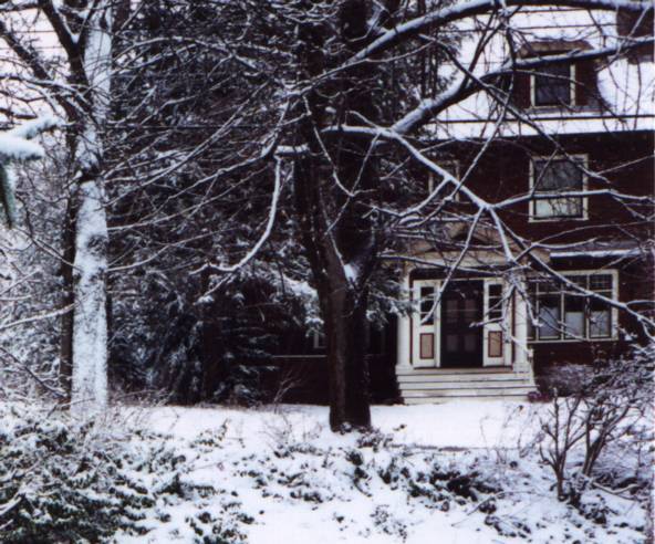 This house across the street was where my good friend Rob lived from about 1981 until college. When we moved in, some elderly lady lived there, and the house was painted gray and ringed with pine trees. When Rob's family moved in, they cut down most of the trees, and gutted the house to remodel it. It remained gray, though. Rob's family has since moved away, and the current owners have painted it this nice shade of red. (148k) |